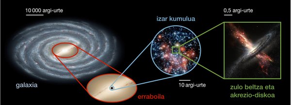 Dozena bat zulo beltz txiki, gure galaxiako zulo beltz erraldoiaren inguruan