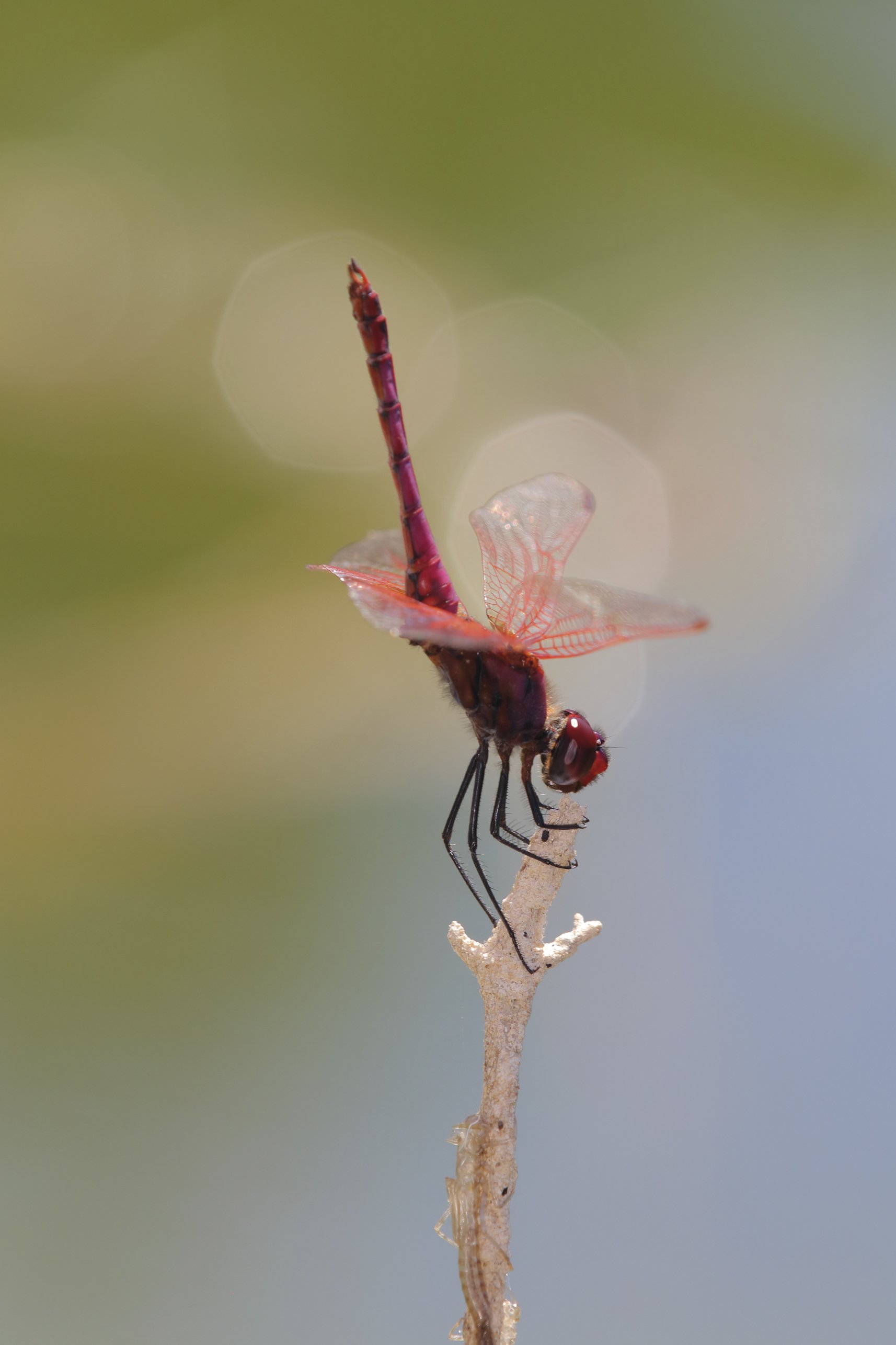 Gauez ekiten dio metamorfosi-prozesuari, eta lehen hegaldia, beti, egun argitan. Hegoak astintzen ditu odonatuak, uretatik urruntzeko. Izan ere, gertu izango ditu arerioak, noiz harrapatuko. Hortik aurrera, heltze-prozesua hasiko du, heldutasun sexuala lortu arte iraungo duena.
