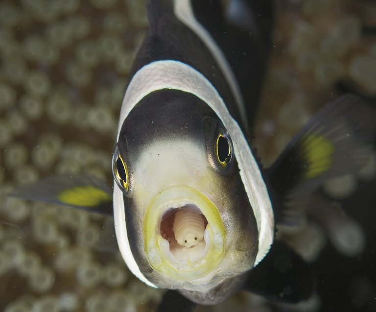 Es un pez con una extraña lengua, una lengua con dos ojos y boca. De hecho, la lengua de este pez es un crustáceo: El Cymothi exigido isopodo. Entre los