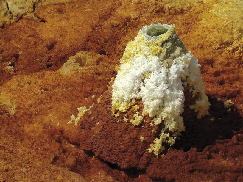 Etiopiaren ipar-ekialdean, Afar triangeluan, Danakil desertuaren erdian, koloreen oasi hau dago: Dallol sumendia.