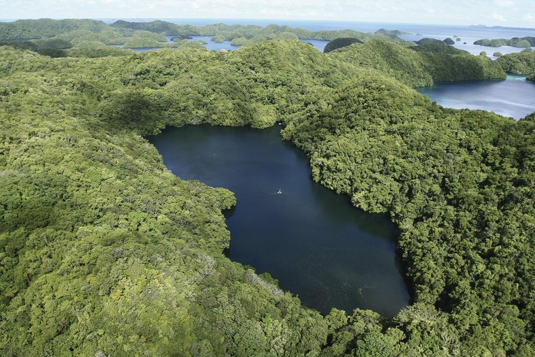 In the Republic of Palau, one of the most unique lakes in the world is located on the island of Eil Malk. It's a salty lake, a piece of sea that got caught. It was filled when the sea level rose 12,000 years ago, and when the sea receded, it became isolated. Ongeim'I Tketau (fifth lake) is the official name of the lake, but it is much more known as the "jellyfish lake".