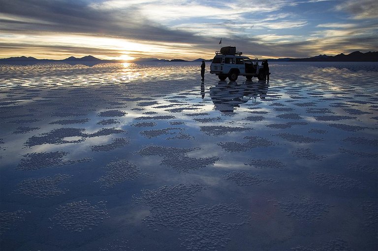 In the Bolivian plateau, in the Andes, Uyuni is at an altitude of 3,650 m, a salt desert of 12,000 km2, the largest in the world. 40,000 years ago there was a great lake in this place, and this spectacular salt flat was formed when the water evaporated from that lake.