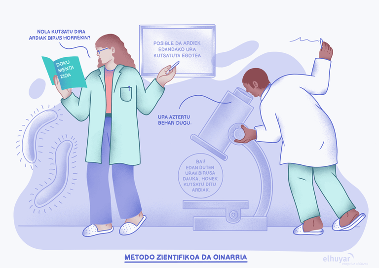 “COVID-19aren kasuak Euskal Herrian gora egin dutela entzun duzu, eta, Teleberrin emango dituzten azken albisteak ikusteko irrikaz, etxean sartu bezain pronto urrutiko aginteko botoia sakatu, eta telebista piztu duzu. Alabaina, telebista ez da pizten. Nola aplikatuko zenuke metodo zientifikoa zer gertatzen den jakiteko?