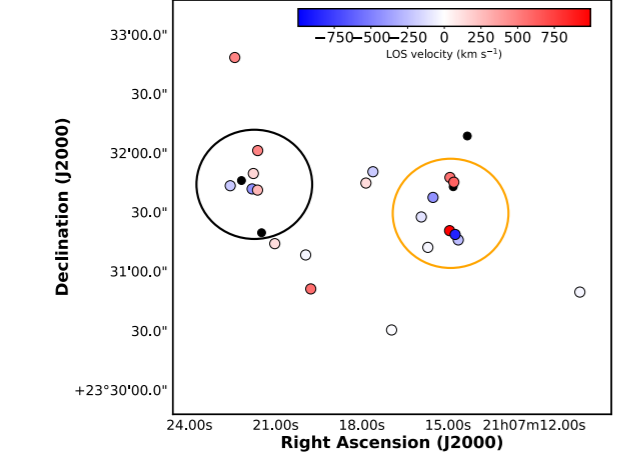 ALMA (Atacama Large Milimeter/submilimeter Array) irrati-teleskopioaren bitartez, irrati-galaxiaren eremuko galaxia gazteen espektruak hauteman zituzten, protokumuluaren barruan ote zeuden baieztatzeko eta taldearen barruko mugimendu erlatiboak neurtzeko.