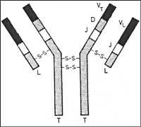 Katea luzearen zati aldagarria hiru genez mugatuta dator: V, D eta J geneez alegia. Katea motzak V eta J geneak besterik ez ditu. Gizakiengan 200 V gene, 20 D gene eta 4 J gene daude.