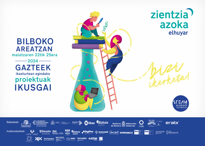 The initiative organized by Elhuyar Zientzia Azoka has the collaboration of the Department of Education of the Basque Government, the Eurorregión Aquitania-Euskadi Navarra, the FECYT (Spanish Foundation for Science and Technology), the Municipality of Bilbao, the Provincial Council of Bizkaia, the Government of Navarre, Telech.