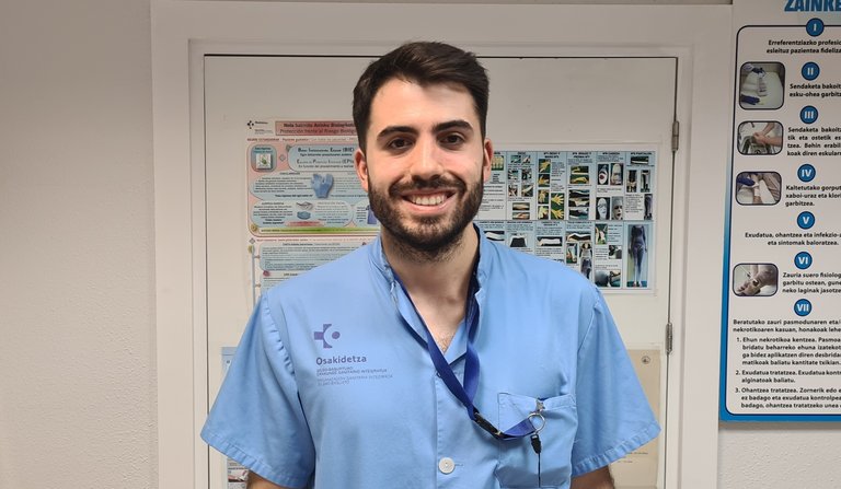 Borja Doncel García es enfermera, investigadora y profesora. Todavía, la mayoría de los traductores de inteligencia articial traducen a la enfermera en femenino, por ejemplo al castellano: la enfermera. Doncel deja claro que en enfermería y en Osakidetza las mujeres son mayoría. Pero esto no tenía a la hora de elegir los estudios: “Por un lado me gustaba el ámbito de la salud, y por otro lado, las enfermeras tenemos una relación muy estrecha con el paciente y esa cercanía me gusta mucho. Por eso elegí enfermería”.