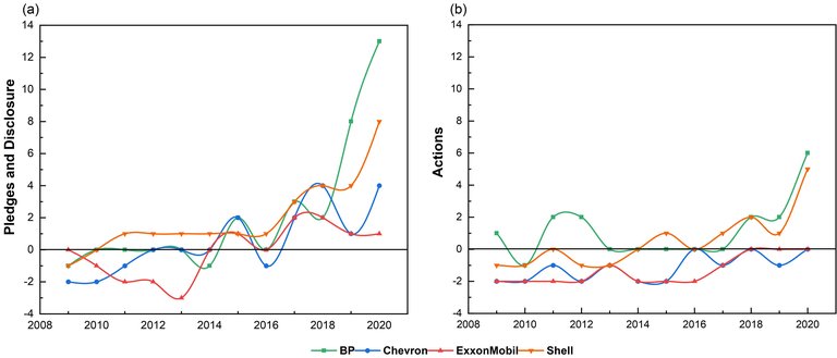 Un estudo realizado na Universidade de Xapón revela que as palabras e accións de BP, Chevron, ExxonMobil e Shell non coincidiron. De feito, nos últimos 12 anos as compañías manifestaron a súa intención de realizar una transición cara á enerxía verde, intencións que non se levaron a cabo.