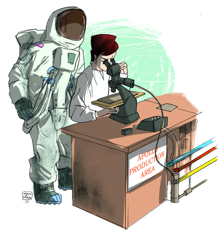 Bata bestearen ondoan eserita, lerro bat bestearen atzean, ehunka emakume jo eta su ari ziren lanean Massachusettsko fabrika hartan, 1960ko hamarkadaren erdialdean. Batzuk erlojugintzatik zetozen, eta ehungintzatik gehienak. Raytheon enpresak kontratatu zituen; enpresa haren elektronika-saileko langileak ziren orain. Baina hobekien egiten zekitena egiten jarraitzen zuten: ehuntzen. Kotoizko, zetazko edo nylonezko harien ordez, kobrezko hariak zerabiltzaten orain eskuetan, trebezia handiz, alde batera eta bestera; lehenengo pertsonak Ilargira iristea posible egingo zuten ordenagailuen memoriak ehuntzen ari ziren.