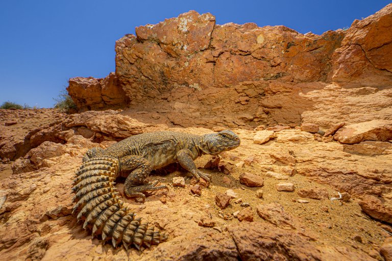 Isats lodia ezkata arantzatsu gogorrez estalia du Uromastyxak, eta defentsarako arma gisa erabiltzen du. Mehatxatuta sentitzean bizkarrez, bere gordelekuan sartuz, sarrera blokeatzeko.