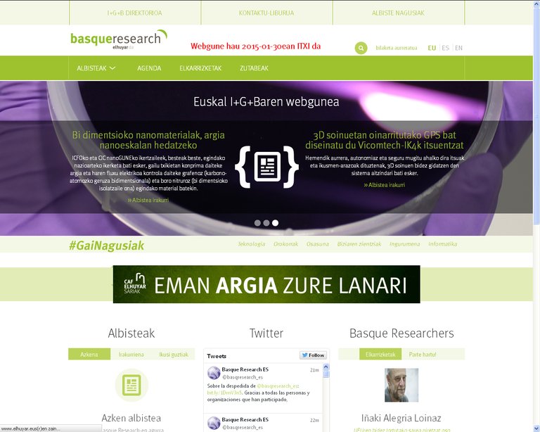 "Hoy es el último día de la web Basque Research. El proyecto, creado en 2002 por iniciativa de Elhuyar y con la colaboración del Gobierno Vasco, ha llegado a su fin.
