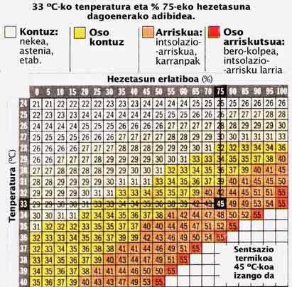 En la imagen de hoy podemos ver la tabla que representa la influencia de la humedad sobre la sensación térmica. Si nos fijamos en la tabla, es fácil comprender por qué tenemos miedo a un clima cálido y húmedo, sobre todo si hay un 100% de humedad que tuvimos el pasado 30 de julio. ¡Hoy tampoco faltará mucho, al menos en la costa!