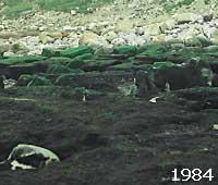 1984an marea azpiko eremua (ezkerreko irudiak) ia-ia hutsa zen, landaredirik gabea, eta arrokak itsasadarretik eratorritako sedimentuz estalita zeuden. Faunari dagokionez ere, anemonak ( Actinothoe ) bakarrik zeuden.