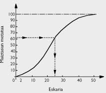 Bere lagunak erabil zezakeen formula erosoa aurkitu nahi zuen gure matematikari gazteak. Behin batean taberna txiki batean elkartu ziren, eta Publicisek hartutako datu zehatzei esker (ikus 4. taula), errazago erabiltzeko adierazpen landuagoa egin ahal izan zuen. Salmenten maiztasunetik, 1. irudian agertzen den maiztasun metatuaren kurba kalkulatu zuen Publicisen lagunak.