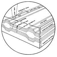 Disko ezabagarriaren barneko egitura 1. irudian erakusten da. Diskoaren ebakiduran ikusten denez, eragin optiko eta magnetikoekiko sentikorra den Tb/Fe/Co-zko geruza batez osatuta dago eta honen alde bakoitza beste babes-geruza gardenaz estalita dago. Guzti hau diskoaren azaleko material den substratu akriliko batetan murgilduta dago. Geruza sentikorrak eta babes-geruzek, launak izan ordez laserra gidatzeko balio izango duten erliebezko pistak osatzen dituzte. Pista bakoitzak 0,8 mikrako zabalera du eta bi pisten arteko tartea ere 0'8 mikrakoa da.