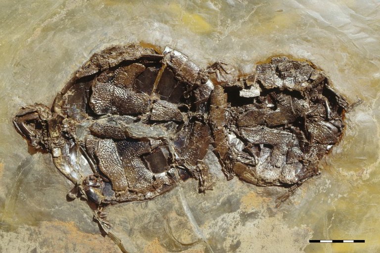 Morreron mentres copulaban nove pares de tartarugas descubertas no xacemento alemán Messel. Así o deduciron os investigadores da Universidade de Tübingen, analizando eses 47 millóns de anos de fósiles atopados nos sedimentos dun lago. A revista Biology Letters publicou que todos son pares dun macho e una femia que nalgúns casos teñen as colas aliñadas. As tartarugas acuáticas, ao copularse na auga, afúndense aos poucos. Isto non adoita ser un problema, pero, neste caso, a hipótese dos investigadores é que as augas de fondo da lagoa eran libres de osíxeno e tóxicas.