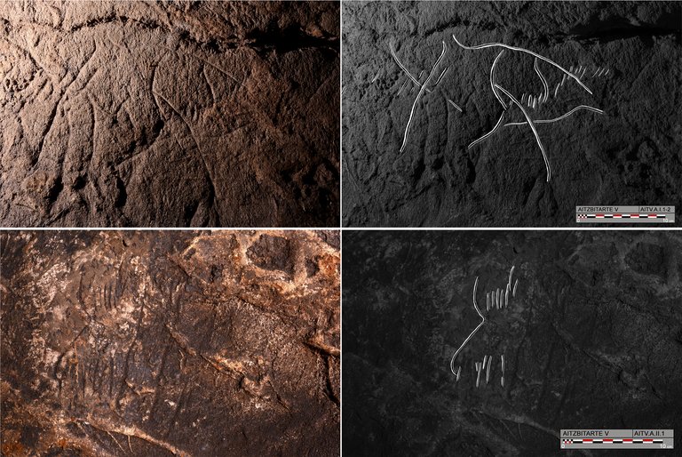 Algunos de los grabados encontrados en las cuevas de Aitzbitarte (Errenteria, Gipuzkoa) en 2016 han sido comparados con los grabados de otras 17 cuevas europeas, y concluyen que la forma de hacer los grabados y su distribución coinciden con algunos de los aperos habituales hace 27.000 años.