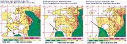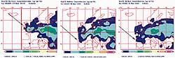 Goiko irudiak NRLk sortutako NAAPS eredutik datoz ( Navy Aerosol Analysis And Prediction System ). Eredu global hori aerosolen aldagai anitzeko analisian oinarrituta dago, eta satelitetik jasotako informazioa eta lurretik neurtutakoa konbinatzen ditu. Adibidean, 2000ko martxoaren 27a, 28a eta 29a agertzen dira; horiek B3 patroian sailkatuta daude (Mediterraneoan kokatutako presio baxuko gunea).