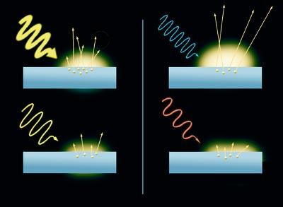 És un efecte curiós. Quan els raigs de llum impacten sobre la superfície d'un metall, fan que s'extreguin els electrons. Aquest és l'efecte fotoelèctric. A més, el resultat varia en funció del color dels raigs. Els electrons alliberats per la llum blava es mouen més ràpid que els alliberats per la llum vermella. De fet, com més gran és l'energia del llamp de llum (la de la llum blava és major que la de la vermella), més ràpid és el moviment dels electrons. D'altra banda, el nombre d'electrons alliberats del metall depèn de la intensitat de la llum, a major intensitat de la llum, major nombre d'electrons. No obstant això, la llum no allibera electrons sense tenir una energia mínima.