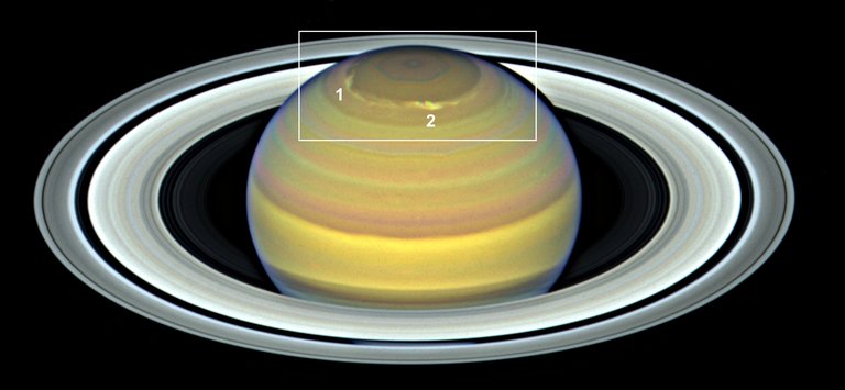 Orbanak desplazatu egin ziren hilabete horietan, abiadura desberdinean, Saturnon ekialdera eta mendebaldera doazen jet korronte atmosferikoek bultzatuta. Horien indarra latitudearen araberakoa da. Lehen orbana, hegorago zegoena, 220 km/h-ko abiaduran mugitzen zen ekialderantz; iparrerago zegoena, aldiz, 20 km/h-ko abiaduran desplazatzen zen mendebalderantz. Ekaitzek topo egin eta perturbazio atmosferikoak sortu zituzten. Perturbazio horiek Saturnoko ipar polo osora zabaldu ziren.