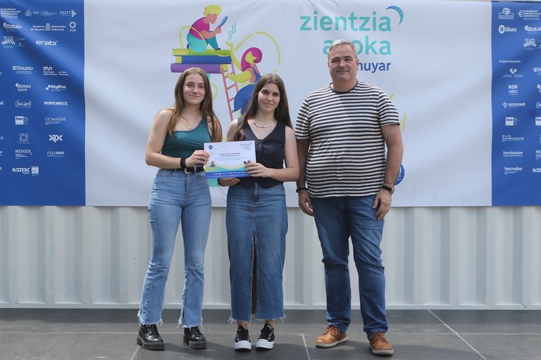 The 2024 Elhuyar Science Fair has ended with the award ceremony held at the Arenal de Bilbao. The event, which took place at 13:00, was moderated by Mago Eleder and journalist María Redondo Múgica. The prizes have been awarded by the sponsors of Elhuyar Zientzia Azoka and by the members of Elhuyar. The awarded projects have been: The awards have been awarded by Cristina Perfecta, researcher at Teleco Renta. The awards have been awarded by Isabel Sarrionandia Ibarra Fernández, Head of the Business Promotion Service of the Provincial Council of Bizkaia. The prize was awarded by Marie Heguy-Urain, a technician from the Eurorregión Nueva Aquitania-Euskadi-Navarra and manager of calls for projects. The awards have been awarded by the Research Director of the Basque Government, Amaia Esquisabel. The awards have been given by Xabier Otxandiano, a member of the Area of Economic Development, Trade and Employment of the City of Bilbao. The awards have been awarded by Jon Abril Olaetxea, general coordinator of Elhuyar. Elhuyar Zientzia This year’s Elhuyar Science Fair has lasted 4 days, from 22 to 25 May, and was held in the Arenal of Bilbao. In this study, 200 projects have been exposed and 800 young people from 70 schools have participated. In addition to young people from schools in Euskal Herria, they have also been awarded at national and international fairs: Eleven groups have arrived in Bilbao. The objective of Elhuyar Zientzia Azoka is to offer young people scientific experiences and to promote and disseminate scientific culture, not only at this fair that is held in Arenal, but also throughout the year. In addition to the young students, research centers and universities of the Basque Country participate in the Fair. In addition, it is worth highlighting the commitment shown each year with this project: at the beginning of the course, 150 researchers from universities and technological centers (including 65 women) registered to work with students and perform the work of evaluators of the last phase. Photo gallery of the award ceremony of Elhuyar Zientzia Azoka.