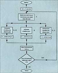 Beraz eta zerorrek, irakurle, baieztatzeko aukera izango duzunez, hemen planteiatzen den programaren ebazpena nahiko erraza eta ulerkorra da. Ordenadoreak erradioa eta beharrezkoa baldin bada, altuera ere eskatuko digu. Ondorenean, eta aurrez emandako aginduen arabera, esfera, kono edo zilindro baten bolumena kalkulatuko du, emaitza adieraziz.