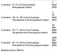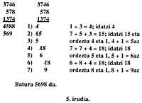 Baina goazen orain, lehenengo eragiketa idatziak ikustera. Hasi baino lehen, ordukoak ez eta gaurko zifrak erabiliko ditugula argituko dugu.