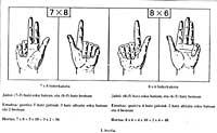 10 eta 15en arteko bi zenbaki biderkatzeko, esku bakoitzean biderkagai bat eta 10en arteko diferentzia adina hatz makurtzen zuten; makurtutako hatzen kopurua 10az biderkatzen zuten buruz; gero bi eskuetan jaitsitako hatz-kopuruak biderkatu eta azkenik bi emaitza horiek eta 100 batzen zituzten