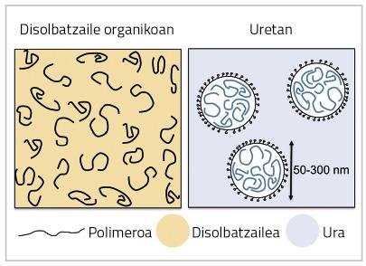 Bien que les revêtements aient d'abord été commercialisés dans des solvants organiques [2], au cours des dernières décennies, le marché se déplace vers des revêtements à base d'eau. Le principal inconvénient de ces premiers revêtements est l'émission au milieu de composés organiques volatils (COV). Les COV sont des solvants à faible point d'ébullition comme l'acétone, l'acétate d'éthyle et les hydrocarbures aliphatiques. Ils ont une mauvaise odeur, beaucoup sont toxiques, augmentent l'effet de serre et augmentent le changement climatique. En outre, dans les revêtements à base d'eau, la phase continue est l'eau, de sorte que les produits ont (ou non) faible teneur en COV. Cela rend les produits plus sûrs, moins chers et plus faciles à utiliser.
