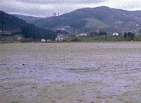 Les fines partícules d'argila transportades pel riu només se sedimenten en zones en les quals el corrent s'alenteix. Per això, els sediments més fangosos apareixen en les aigües estancades que es formen en trobar-se els corrents fluvials amb els corrents de marea. En les zones on predominen els corrents de marea, apareixen sediments arenosos nets. També poden aparèixer llits de grava o roca en zones sotmeses a forts fluxos de marea o riu.