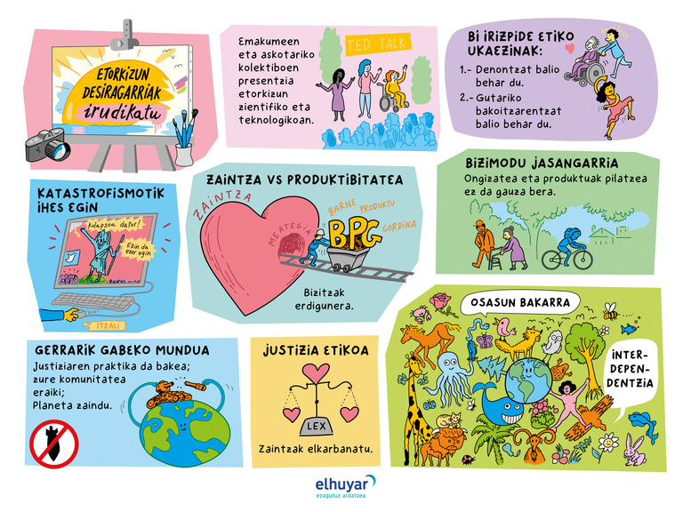 Para saber que mundo quérese conseguir, o primeiro que hai que facer é liberar a imaxinación e imaxinar que tipo de planeta e de vida quérese no futuro. O sistema actual non pode ser o único modelo, senón atoparémonos cos mesmos problemas e limitacións. Soñar, reflexionar e imaxinar futuros desexables…