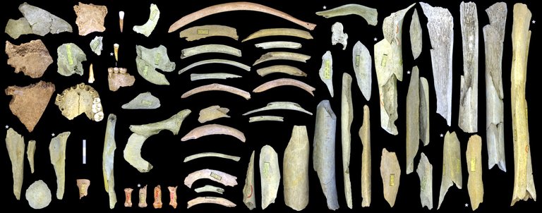 Hiru tibiatan eta femur batean aurkitu dituzte aztarna horiek. Antza denez, lehenik jateko txikitu zituzten, eta, gero, harria lantzeko egokiak zirela ikusita, erabili egin zituzten, beste animalia batzuenak erabiltzen zituzten bezala.
