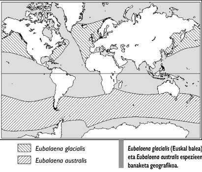 Eubalaena australis es una especie estrechamente relacionada con la ballena vasca. Se mueve en el hemisferio sur, cerca de la Antártida (ver mapa). Aunque algunos autores la consideraron como de la misma especie, el CBI (Comisión Internacional de Ballenas) la clasificó como especie diferente en base al aislamiento geográfico existente.