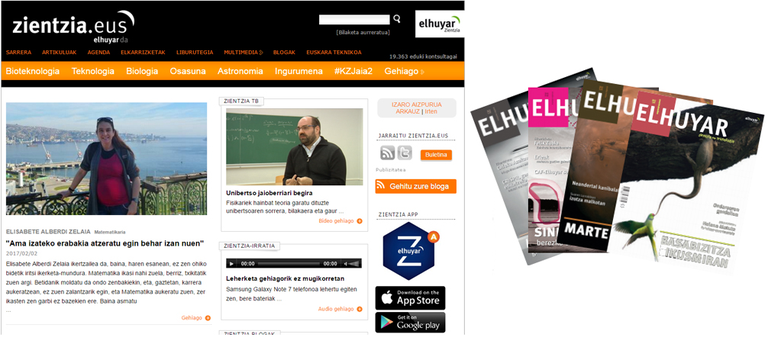Elhuyar has been publishing the magazine Elhuyar Zientzia eta Teknologia in Basque for thirty years. It is one of the few journals in Basque dedicated to scientific dissemination in the Basque Country and has reached to date thanks to the support shown by thousands of subscribers. Its objective is to disseminate scientific culture in Basque, in order to promote a society with criteria, criticism and participation. In addition to the paper edition, it has a digital version on the internet with more content.