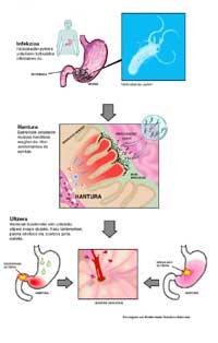 Bakterioak urdailaren behealdea infektatzen du hasieran. Ingurua handitzea eragiten du, eta badirudi hantura kronikoak goialdean urdail-azidoa ekoiztea eragiten duela. Ondorioz, areagotu egiten dira urdaileko eta duodenoko ultzera azaltzeko aukerak. Kasu larrienetan, mukosa odoldu eta zulatu egiten da.