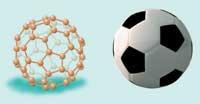 Los fullerenos son moléculas en forma de balón formadas por carbono. Se asemejan al balón de fútbol, es decir, son estructuras redondas y vacías de 60 carbono formadas por 12 pentágonos y 20 hexágonos (C60). El químico inglés Harold Kroto y su equipo encontraron fullerenos en 1985 mientras investigaban la composición de las estrellas. Casualmente se encontraron con una nueva estructura: con una estructura en forma de jaula de 60 átomos de carbono. Años después, en 1996, el profesor Kroto recibió el Premio Nobel de Química por este descubrimiento.