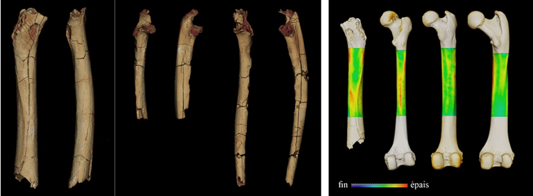 La posición del cráneo respecto a la columna, hace que se sospeche que iba a estar de pie. Ahora, los investigadores del CNRS han podido estudiar los fósiles de las extremidades (un fémur y dos cubitos) y han confirmado esta sospecha. En concreto, se ha estudiado la morfología externa y las estructuras internas de estos huesos mediante microtomografía. Así, se han obtenido mediciones biométricas, morfometría geométrica e indicadores biomecánicos, comparándolos con muestras actuales de simios y fósiles como chimpancés, gorilas, orangutanes, simios de Mioceno y linaje humano.