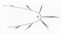 Empezamos por preocuparnos por la apariencia del cometa cuando está en el afelio de su órbita. Cuando están en el afelio, la mayoría de los cometas están muy lejos del Sol –en el caso de Halley aún más lejos que Neptuno–, estando todos sus componentes congelados. F.L. En palabras de Whipple, el cometa sería una bola de nieve sucia. La nieve estaría compuesta por agua, óxido de carbono ( IV ), ácido cianhídrico y otros compuestos congelados, que son la suciedad, el polvo (silicatos) intercalado en el hielo y la fracción de ciertos metales (ver ). El diámetro de esta bola que hemos descrito no sería más que un kilómetro, tan pequeña y tan alejada sería invisible.