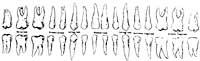 - Behin-betiko hortzeria: 2 ebakortz, 1 letagin, 2 aurreko hagin eta 3 atzeko hagin masailezur-erdi bakoitzean