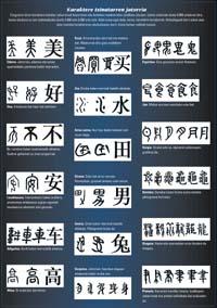 The symbols that encode the sounds are typical in the Chinese, the most common in all of them. They are formed by two symbols, the first gives meaning to the symbol and the second indicates how it is pronounced.