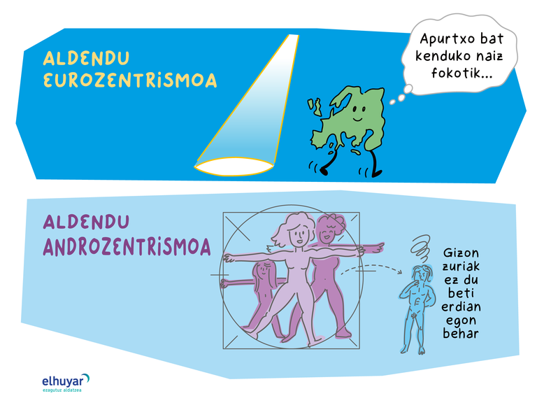 Els europeus a vegades vivim mirant el nostre melic. Ignorem altres realitats del món i, sense adonar-nos, ampliem la visió eurocentrista. Per tant, és interessant reflexionar si les nostres opinions, arguments i propostes tenen en compte altres realitats del món, o si les podem fer des d'una perspectiva més àmplia.