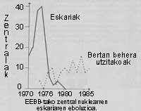 Kostuen eztanda honen atzetik, ziurtasun-neurri gogorrak eta eraikitze-epeen luzapena daude. Esaterako, 1977.ean EEBB-tan 72 hilabete behar baziren 1984.ean 101 hilabete behar ziren eta 1985.az gero ez da zentral nuklear berriaren enkargurik izan. Bertan behera uzteak ordea, ugari izan dira. Grafikoa nahiko adierazgarria da.