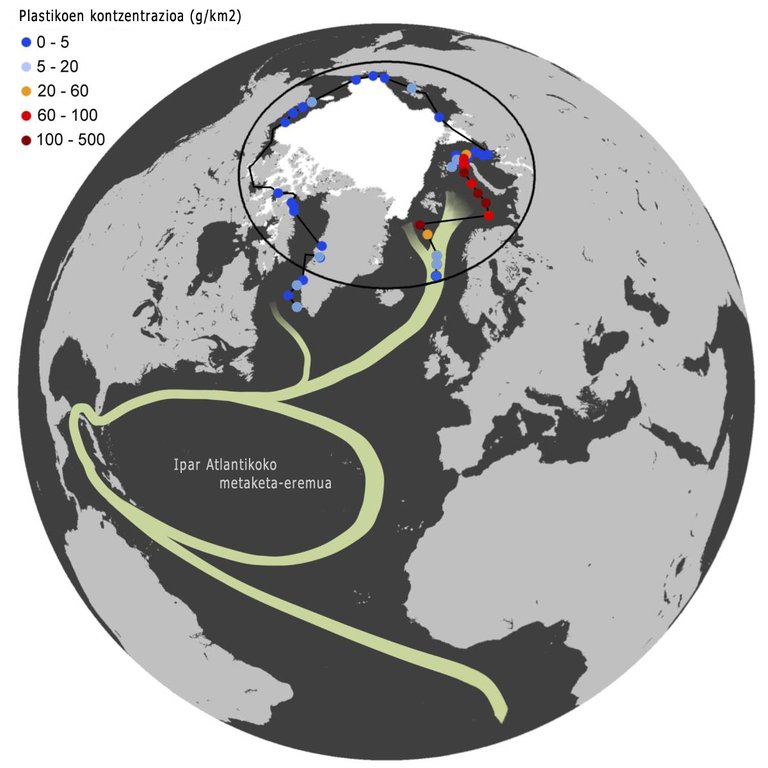 Cadizko Unibertsitateko ikertzaileek zuzendu dute ikerketa, eta tartean AZTIkoak ere aritu dira. Sciences Advances aldizkarian argitaratu dute lana, eta, haren arabera, emaitza ezustekoa izan da. Hain zuzen ere, zientzialariek ondo ezagutzen dituzte plastikoen pilaketak ozeano subtropikaletan. Lasterren biraketetan, kostan botatako plastikoak biltzen dira, eta, denborarekin, desegiten eta hondoratzen joaten dira. Artikoan, ordea, ez zuten uste halakorik egongo zenik, inguruko kostetan ez baitago populaziorik. Alabaina, orain egindako ikerketan frogatu dute, Ozeano Artikoaren azalaren % 37 garbi dagoen arren, badaudela poluitutako eremuak. Hala, Barents eta Groenlandiako iparraldean eta ekialdean neurtu dituzte plastiko-kontzentrazio handienak.