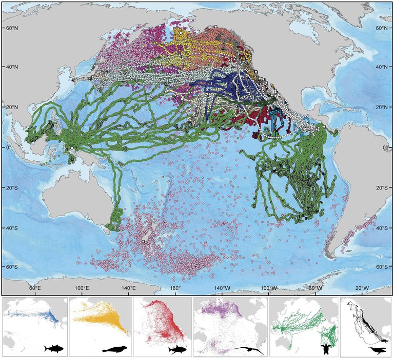 Migrazioetan egiten dituzten bideen jarraipena egiteko, 4.306 gailu elektroniko erabili zituzten ikertzaileek 2000. eta 2009. urteen artean. 23 espezietako 1.791 banakoren nondik norakoak ezagutu zituzten hala. Ondoren, Stanford Unibertsitateko Barbara Block ikertzaileak (artikuluaren egile nagusiak), Nature ren webgunean adierazi duenez, ordura arte inork egin ez zuen zerbait egin zuten: migrazio-bide guztiak elkartu, eta gunerik partekatzen ote duten aztertu zuten.