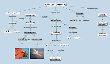 Orduan konturatu zen kontzeptu-mapak egiteko gaztelaniaz eta ingelesez dauden irizpideek ez dutela balio euskararen kasuan. Izan ere, euskaraz hitzak deklinatu egiten dira, eta, beraz, kontzeptuetan ezin dira hitzak atzizkirik gabe jarri, bestela, mapako esaldiak ezin dira osorik irakurri goitik behera. Nola jarri atzizkiak esaldiak osatuak gera daitezen eta, aldi berean, mapa garbia eta ulerterraza izan dadin? Hor dago gakoa.