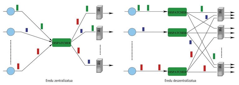 Zerbitzari-multzoetan egiten den karga-banaketaren eredu matematikoa aurkeztuko dugu, eta aurreko paragrafoko galderari erantzuna emango diogu. Horretarako, karga-banaketaren bi eredu alderatuko ditugu: eredu zentralizatuan, batetik, bideratzaile bakar batek egiten du bezeroen eskaera guztien banaketa; eredu deszentralizatua, bestetik, zenbait bideratzailez osaturik dago, eta bideratzaile bakoitzak eskaera guztien zati batez arduratzen da.