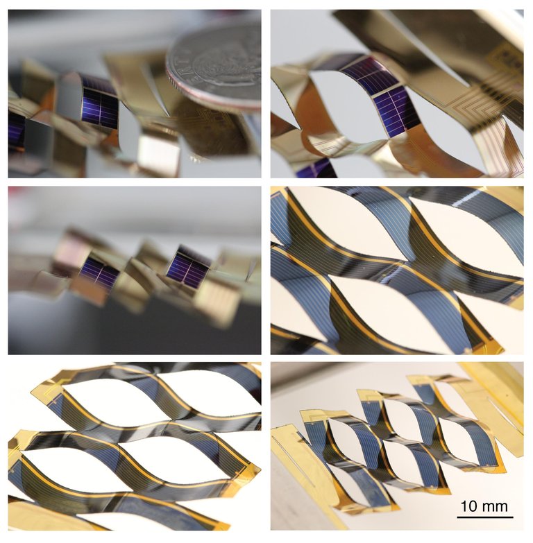Los ingenieros de la Universidad de Michigan estuvieron junto a un artista experto en quirigamia de la misma universidad en la búsqueda de nuevos diseños de paneles solares. El artista les enseñó modelos hechos con papel y los ingenieros los repitieron con células solares. Lo probaron pero vieron que el modelo más sencillo era el más eficaz. Se trata, básicamente, de una serie de bandas interconectadas, y sólo tirar de los extremos del lote es suficiente para cambiar la orientación de las bandas.