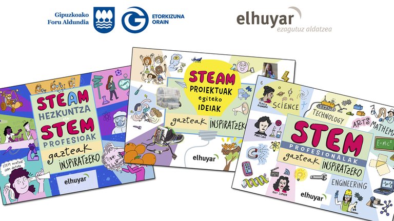 Entorn de la col·lecció de tres fullets amb il·lustracions i textos explicatius de Pernan Goñi, Aitziber Lassa, responsable d'educació i guia del projecte Elhuyar STEAM ha donat detalls. Els tres fullets estaran disponibles en zientzia.eus/steam per a descarregar-los gratuïtament: