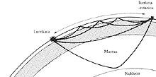 En el centre de la Terra hi ha un nucli sòlid i al seu voltant un nucli líquid (veure figura). Després arriba el mantell, dividit en dues parts: mantells baixos i mantells superiors. Totes dues parts presenten una composició química o un estat cristal·lí diferent, encara que encara no es coneix amb exactitud. Finalment es troba la capa externa o escorça.