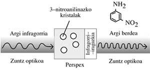 Konposite-mota berri bat aurkitu da Erresuma Batuko Sussex-eko unibertsitatean. Material berri hau, zuntz optikozko komunikaziotan erabiltzeko interesgarria izan daiteke. Komunikazio-mota hauetan argiaren maiztasuna aldatu egin behar izaten da eta hauxe da, hain zuzen ere, material berri honek duen propietatea. Orain arteko maiztasun-aldaketak kristal hauskor batzuen bidez egin izan dira.